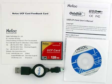 Можно воспользоваться любым кабелем (это очень сильно отличает UCF от карт Lexar со встроенным USB-контроллером), хотя большинство пользователей наверняка предпочтут пользоваться штатным кабелем регулируемой длины. Также в комплекте имеется CD с драйверами для Windows 98 (для других систем не требуется), краткая инструкция, да гарантийный талон.