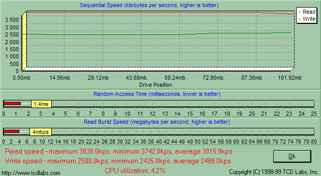 Как карта выглядит на фоне других, мы разберем позднее. Сейчас же сравним скорость работы двух встроенных интерфейсов. Начнем с времени доступа: