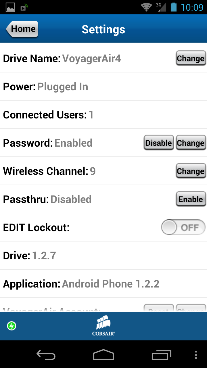 Накопитель имеет два сетевых интерфейса — проводной гигабитный и беспроводную точку доступа. Первый вариант позволяет использовать Corsair Voyager Air в качестве простейшего NAS с доступом через стандартное сетевое окружение Windows: IP-адрес он получает от роутера по DHCP, сетевое имя — VOYAGERAIR, общая папка одна, никаких пользователей и установки прав не предусмотрено.