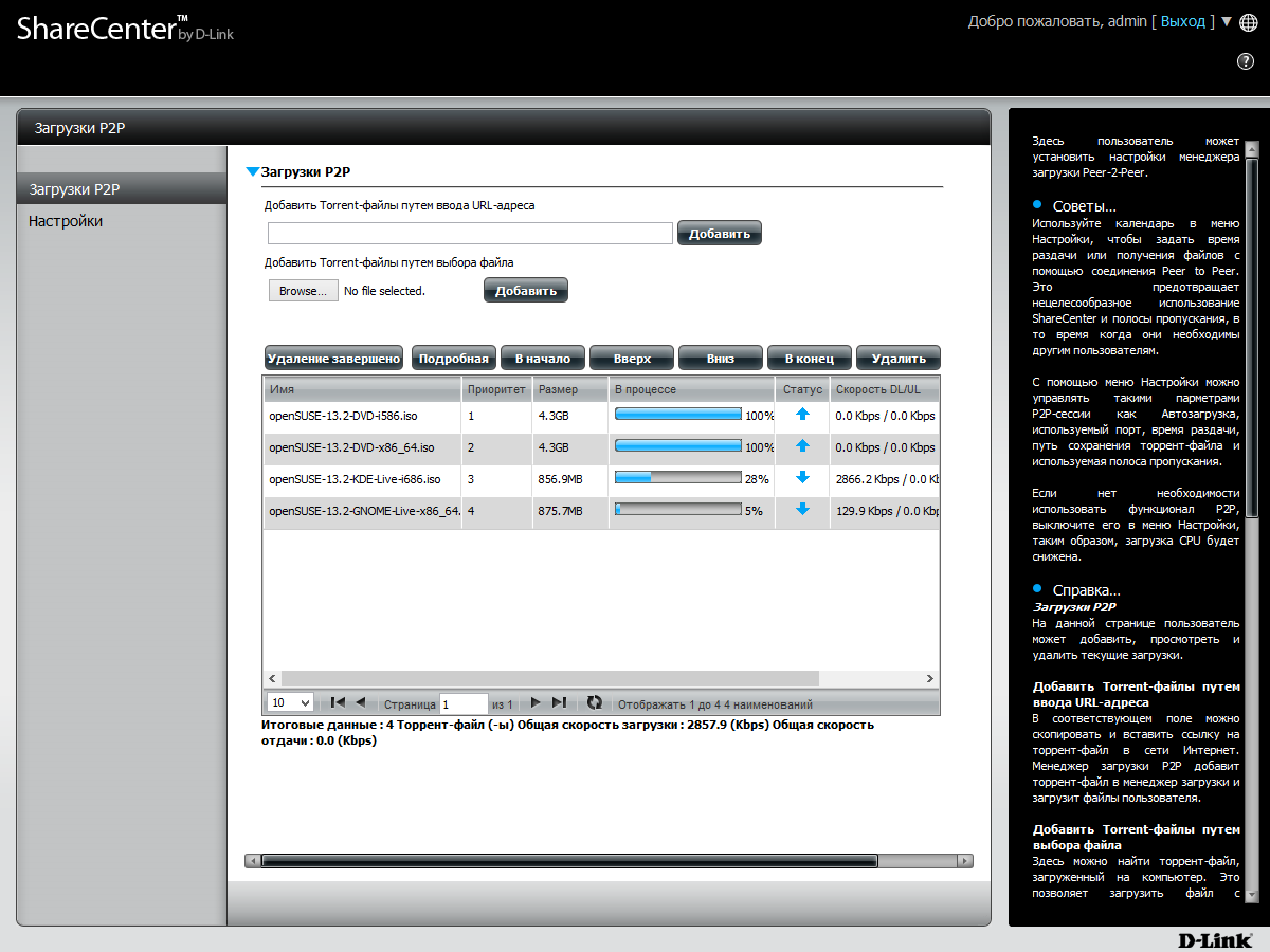 Заметим, что при активной одновременной работе нескольких дополнительных программ интерфейс устройства может стать не самым отзывчивым. Что касается скорости загрузки из сетей p2p, то там удавалось увидеть цифры до 6 МБ/с, что достаточно неплохо.
