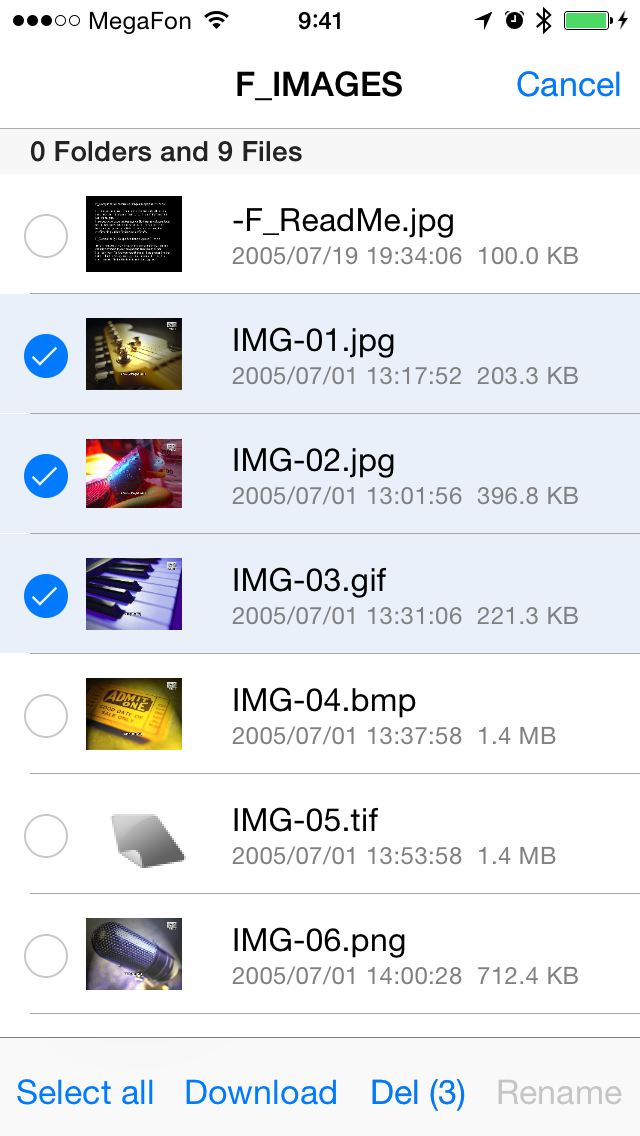 Третий вариант — «Мои файлы» — уже не имеет дополнительных функций связанных с форматами мультимедиа, но предоставляет возможности управления файлами любых типов, включая загрузку и скачивание, копирование и перемещение, удаление и работу с архивами.