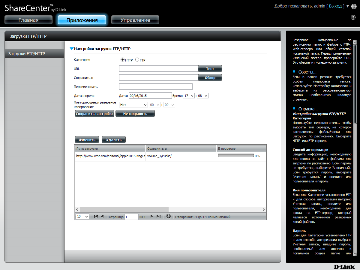 Что касается штатных программ в прошивке, то и здесь можно найти интересные функции. В частности, это сервис автономной загрузки файлов по протоколам HTTP/FTP/BitTorrent, резервное копирование в Amazon S3, синхронизация с облачными хранилищами Dropbox и Google Drive (связь со службой Google у нас не получилось настроить) и программы для резервного копирования.