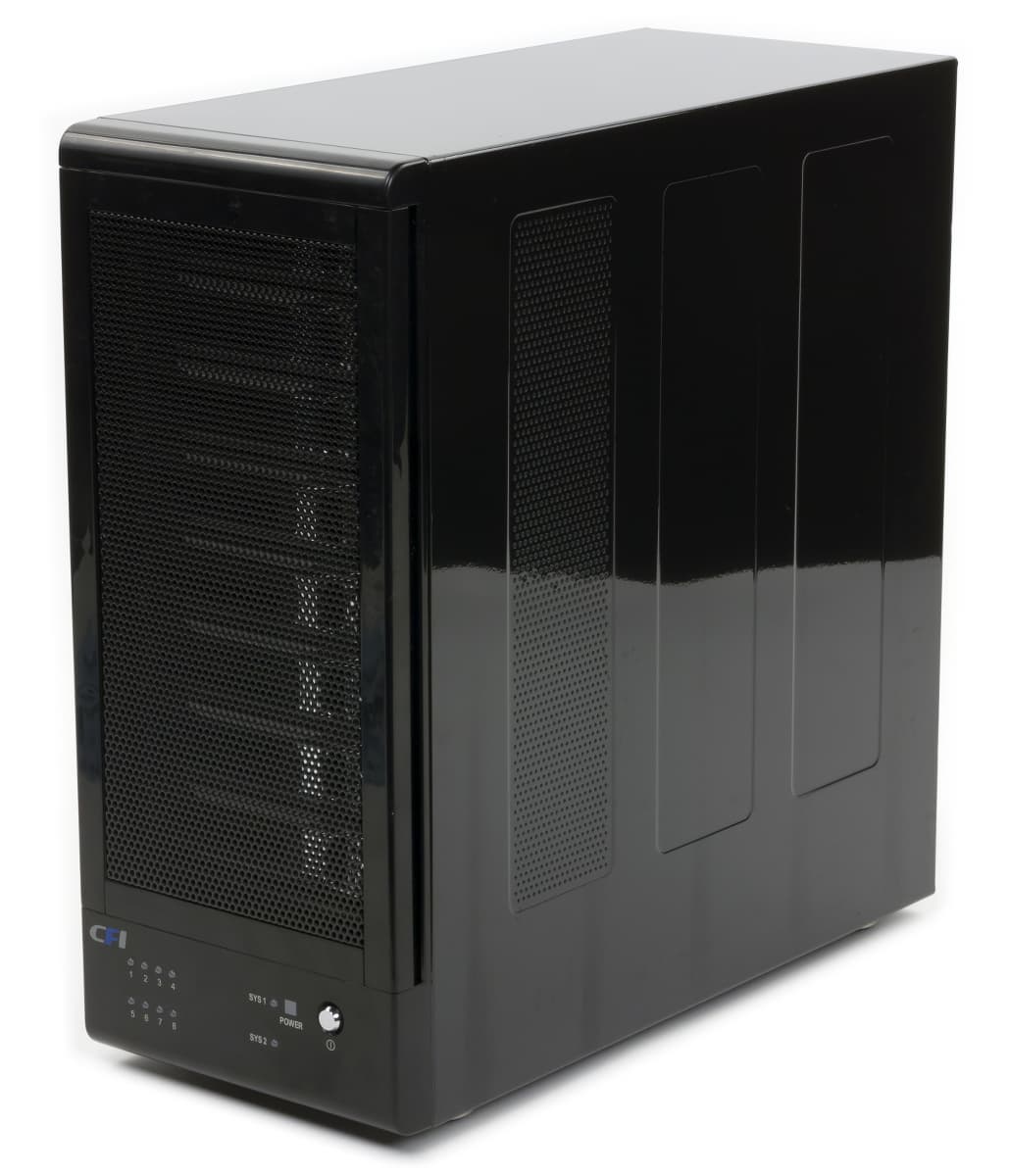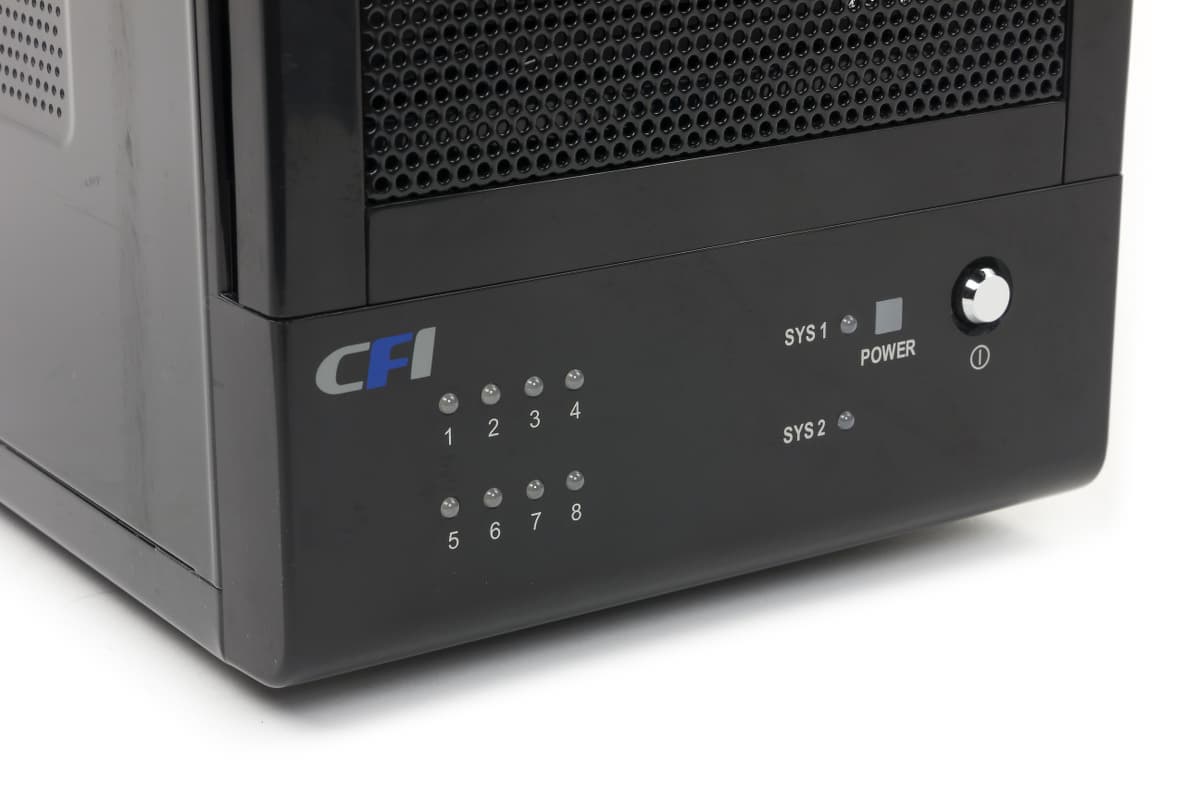 В этом материале мы познакомимся с накопителем CFI B8283JDGG, который имеет восемь отсеков для винчестеров и интерфейсы eSATA и USB 3.0. Максимальный объем хранилища данных может составлять внушительные 32 ТБ, если не требуется отказоустойчивость, и 24 ТБ, если необходимо обеспечить сохранность данных при отказе диска.