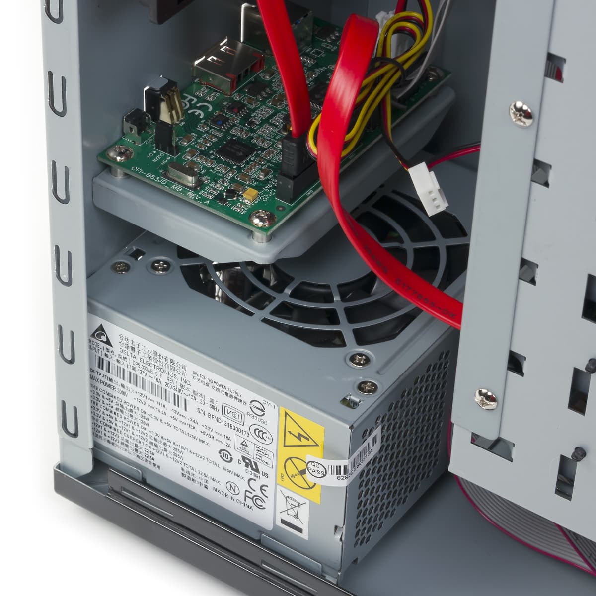 Питание системы обеспечивает блок Delta DPS-300AB-9, с которым работает еще одна небольшая плата для запуска системы от фиксируемого выключателя.