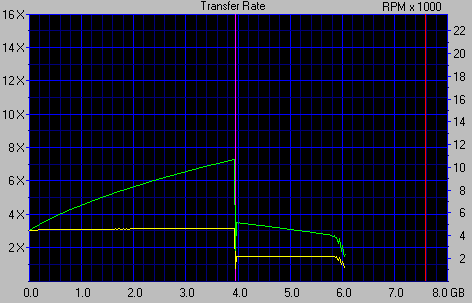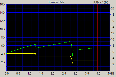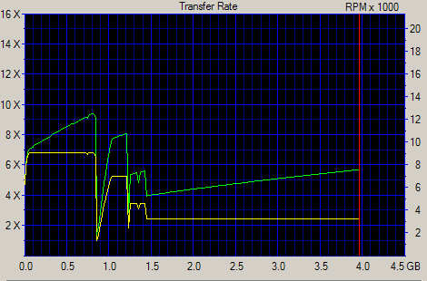 Для сравнения производительности в скорости записи DVD+RW дисков с обоими дисководами использовалась программа Nero Burning ROM. В качестве контента для записи на DVD был использован образ диска, состоящий из семи образов тестовых CD-R объемом 4,5 Гбайт.