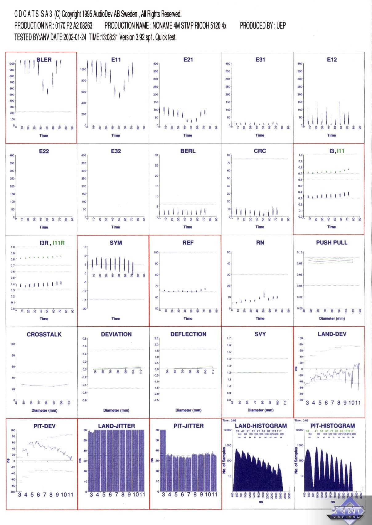 Ricoh, несомненно, имеет одни из самых лучших показателей по скорости записи CD-R носителей любых типов. Запись «noname болванок» — лишнее тому доказательство. Тот же TEAC CD-W512EB записывал диск почти на две минуты дольше.