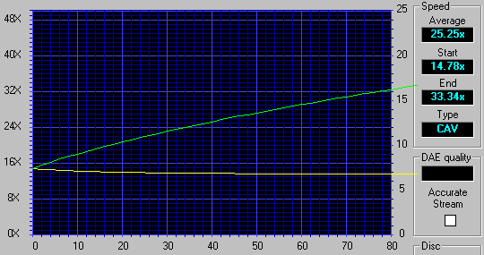 Также как и в CDSpeed, мы можем лицезреть отличное уверенное качество считывания обоими дисководами на всех записанных носителях. Явно выраженной «пилы» или «завалов» нет ни на одном из графиков.
