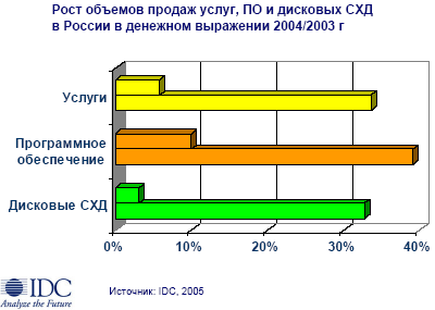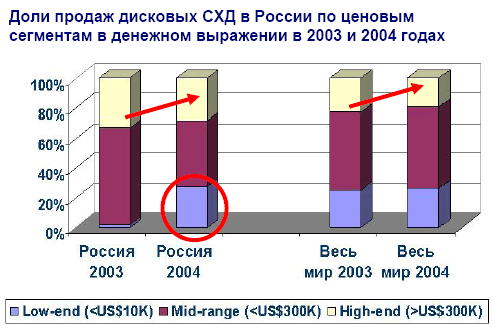 Кстати, в следующем году ожидается еще больший рост спроса на СХД! И если раньше в ассортименте продуктов компании был в основном только High-End, то сейчас EMC добавила много более дешевых продуктов (Clarion ATA и пр.) и за счет этого был получен хороший бизнес-эффект.