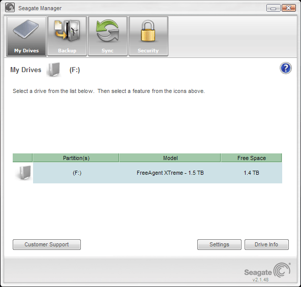 Что ж, приступим к изучению нового Seagate Manager, благо именно им комплектуются ныне все FreeAgent, кроме Мак'овских версий, т. е. и обе настольные, и портативная модель. На этапе установки не обошлось без эксцессов — программа запустилась, увидела ВЖД, после чего сходила в интернет, где обнаружила свой апдейт. Мы согласились на его установку, после чего выяснилось, что обновленная версия упорно «не замечает» ни Desk, ни Xtreme, причем независимо от используемого интерфейса. Попытка установить старую версию «поверх» обновленной успехом не увенчалась. Пришлось «сносить» программу и устанавливать ее заново с накопителя, отказываясь от предложения обновить ПО. Позднее, уже изучив возможности приложения, мы попробовали его обновить вручную — все сработало нормально. Почему не получилось первый раз? Непонятно. Возможно, что проблема кроется где-то в конфигурации нашего тестового стенда, но сам факт ее возникновения крайне неприятен.