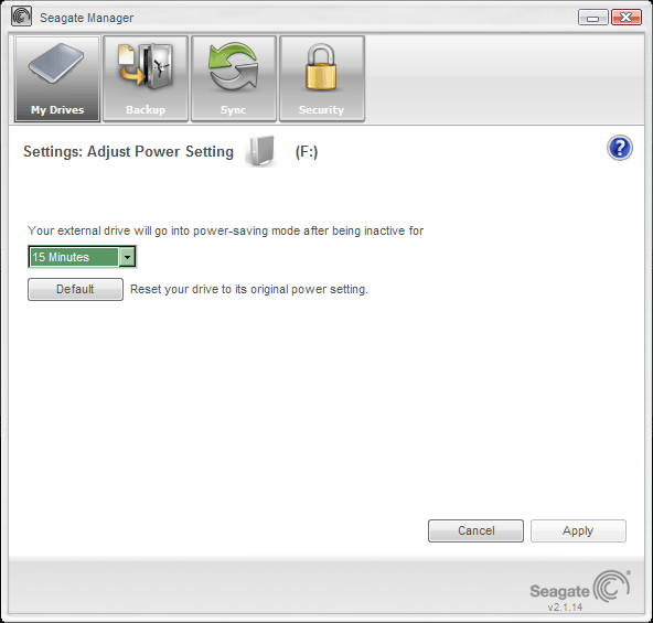 Период неактивности, после которого накопитель переходит в спящий режим, выбирается достаточно гибко: 3, 5, 10, 15, 30 минут, 1, 2, 3, 4, 5 часов или никогда. Значением по-умолчанию является 15 минут, что достаточно удобно для постоянно используемого компьютера, но если вы допускаете в работе достаточно длительные паузы, вполне разумным будет временной интервал увеличить.