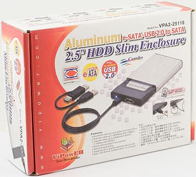 Поскольку, как мы уже не раз отмечали, использование интерфейса eSATA в портативных внешних винчестерах на базе жестких дисков с пластинами диаметром 2.5″ неудобно, а внедрение USB 3.0 до сих пор дело отдаленного будущего, на данном сегменте рынка продолжается застой. Впрочем, нельзя сказать, что на нем совсем ничего не происходит. Во-первых, скорости USB 2.0 многим уже недостаточно, так что они готовы мириться с неудобствами и использовать eSATA. Во-вторых же, сами по себе мобильные винчестеры постепенно (но все более активно) осваивают SATA-интерфейс. Соответственно, прослужившие нам много лет мосты USB-PATA становятся архаичными, и нужно выпускать новые продукты на новой элементной базе. А смена электронной начинки является и неплохим поводом предложить что-то новое в плане дизайна. Таким образом, новые продукты на рынок все же выходят. Нередко достаточно интересные. Причем внешние модули и «готовые» внешние винчестеры в сборе сейчас выпускает масса компаний самой разной величины, так что перед прилавком несложно понять, что чувствовал во времена древних греков всемирно знаменитый буриданов осел :) Остается тестировать, чем мы сегодня, в очередной раз и займемся. Сегодня у нас в гостях достаточно интересный внешний модуль от компании ViPower, носящий несколько неудобоваримое название VPA2-25118.