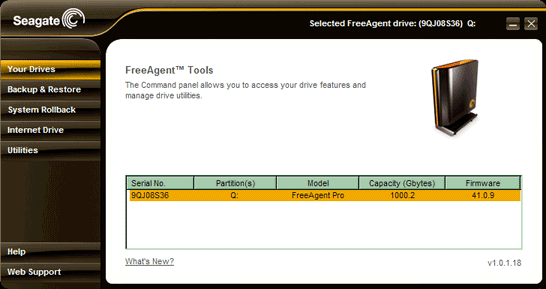 Но мы не будем подробно знакомиться с этими возможностями — лучше продолжим изучение того, что пользователю доступно и без выхода в глобальную сеть или приобретения расширенных версий утилит. Благо, что еще есть, что изучать — кроме написанного Memeo AutoBackup, в состав ПО для накопителя входят достаточно мощные утилиты, написанные самой Seagate. Интерфейс программ, в целом, привычный по всей продукции Seagate/Maxtor (например, ПО для некоторое время назад изученного нами Maxtor OneTouch 4 Mini отличалось лишь деталями), причем до всех важных функций можно быстро добраться при помощи значка в системной области панели задач. Первая же закладка большинству пользователей может показаться избыточной — нужна она лишь при наличии в системе нескольких накопителей серии FreeAgent, дабы получить информацию о каждом из них, либо провести какие-либо индивидуальные настройки.