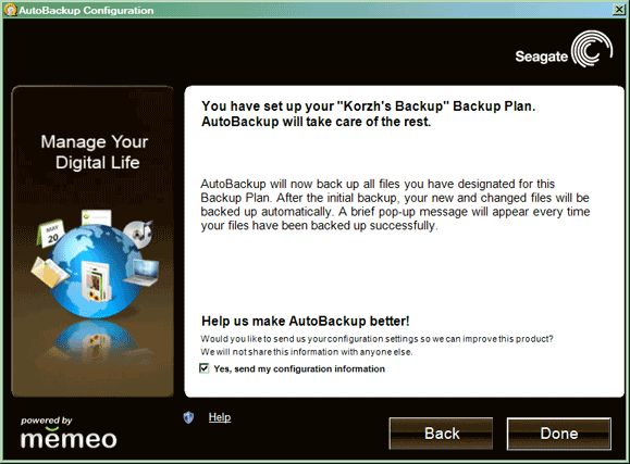 В этом же окне можно получить информацию о том, что следует делать, если мы хотим обеспечивать резервное копирование информации с нескольких компьютеров (чего комплектная программа не умеет) или настроить автоматический аплод фотографий на один из соответствующих сервисов — Shutterfly.