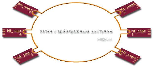 В настоящее время наибольшее распространение получила схема организации петли с помощью активных концентраторов, которые умеют изолировать поврежденный NL_порт путем автоматического подключения внутреннего резервного пути.