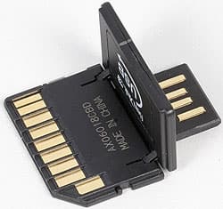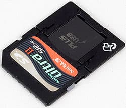А вот с точки зрения практического использования меня терзают сильные сомнения в полезности данной разработки. Посудите сами — фактически цена одностандартного картовода сейчас не больше разницы в цене между обычной и «плюснутой» модификациями карт. При этом картовод покупается всего один раз. А в случае SD Plus если нам окажется мало одной купленной карты, и мы решим купить вторую (третью, четвертую…), то плату за совместимость с USB придется заплатить каждый раз. Такая вот странная экономия. Опять же — «обычные» карты бывают и быстрее, а с учетом того, что делают их все, кому не лень, одновременно с этим еще и дешевле (иногда существенно — так, например, на момент написания статьи «полугиговая» SD Plus «тянула» чуть ли не на столько же вечнозеленых, как двухгигабайтные SD многих производителей). И даже если душа просит чего-то эксклюзивного, так что такая покупка крайне интересна и с точки зрения «потребительского зуда», не стоит забывать об некоторых особенностях конструкции, которые могут вас со временем не порадовать. Просто, как показывает практика (и законы Мерфи), все, что может сломаться, по закону подлости ломается. С учетом того, что ломаются нередко и «монолитные» корпуса обычных карт или флэшдрайвов, сильно доверять конструкции с наличием механики вообще сложно. Впрочем, карта наверняка продолжит работать и дальше, причем в обеих своих ипостасях, но вот выглядеть после этого будет куда менее симпатично.