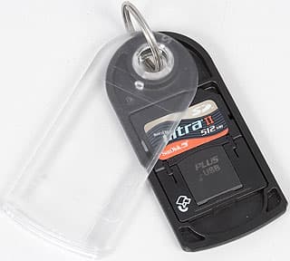 В руки ко мне попал полугиговый экземпляр карты в таком вот симпатичном футлярчике, предназначенном для ее ношения на брелке с ключами. Такой вариант транспортировки весьма удобен при использовании карты в роли флэш-накопителя.
