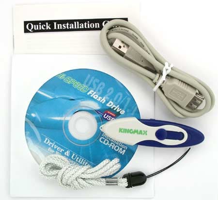 Комплект поставки тоже более чем привычен: USB-удлинитель, краткая инструкция, шнурок-«ошейник» да CD с дополнительным ПО. Ну и сам накопитель емкостью от 32 Мбайт до 2 Гбайт, соответственно.