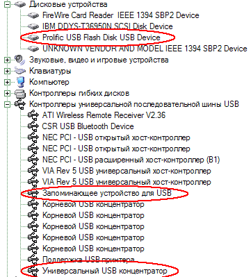 Накопители на данном контроллере появились относительно недавно, однако отрицательных отзывов о них уже весьма немало. В первую очередь хромает совместимость, особенно с контроллерами USB 1.1. Почему так пока неясно, однако кое-какие мысли есть — я не знаю, каким должно быть внутреннее устройство контроллера, чтобы в списке устройств он порождал еще и USB-концентратор. Похоже, что фирма-разработчик наворотила чего-то такое, что непонятным осталось ей самой. Скажу, правда, что проблем с Prolific лично у меня не возникло, однако нужно хорошо подумать прежде чем приобрести — дыма без огня не бывает. Впрочем, нужно еще посмотреть на результаты работы — вдруг на накопители на данном контроллере вообще не стоит обращать внимания.