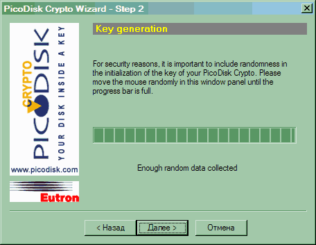 Следующий шаг знаком всем, кто работал с компьютерными системами безопасности, использующими шифрование информации: нас просят немного хаотически подвигать мышью для генерации случайного числа.