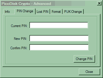 Вот так вот выглядит стандартное окошко ввода пароля, если мы подключаем уже подготовленный к использованию накопитель к компьютеру. Можно ввести PIN, нажать кнопку «ОК» и приступить к работе. Если же мы забыли пароль или хотим изменить параметры устройства, то следует воспользоваться кнопкой «Advanced». При этом перед нами появится диалоговое окно с несколькими закладками.