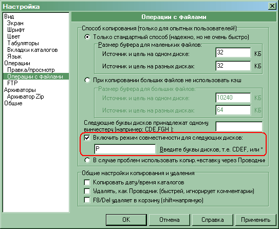 Аналогично лечится проблема и в случае старых версий FAR, но там все несколько менее удобно: стандартную функцию копирования можно включить только для всех дисков. Впрочем, у пользователей этой программы всегда есть еще один выход — перейти на 1.70b5, где и проблема эта существенно ослаблена (6 Мбайт/с пользуясь встроенной, а не системной функцией копирования, получить не удастся — выйдет где-то 3-4 Мбайт/с, что все равно в три-четыре раза больше, чем в старых версиях и на порядок больше, чем в Total Commander), и новых возможностей масса. А работает она, как я уже убедился, превосходно, несмотря на то, что бета.
