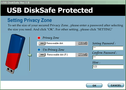 К сожалению, утилиты для создания загрузочного устройства там обнаружить пока не удалось — доступны драйвер для Windows 98 и программа DiskSafe. Возможности ее стандартны для данного класса ПО — накопитель можно разбить на две части, одну из которых защитить паролем.
