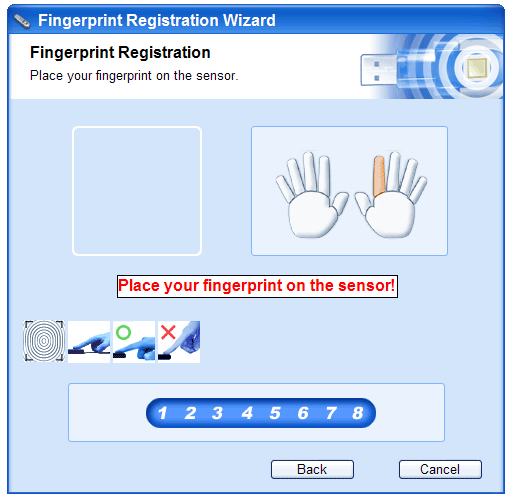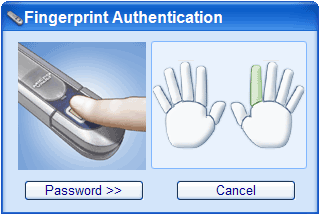 Отмечу, что при введенном пароле пальчик необязателен — все операции можно выполнять зная один лишь пароль. Причем защита компьютера от этого страдает даже сильнее, чем можно было бы представить.