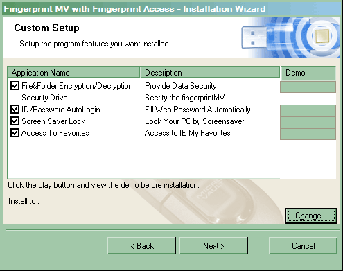 В остальном накопитель ничем не выделяется, а если и выделяется, то не в лучшую сторону — так, например, объем памяти может составлять только 64 или 128 мегабайт, что в наше время уже несколько маловато. Таким образом, тем более интересным становится то, какие возможности нам дает работа с отпечатками пальца. Чтобы это выяснить, нужно поставить специальный драйвер (просто для переноса данных можно обходится и без него — будет просто неизвестное устройство в списке висеть, да и все) и программное обеспечение.