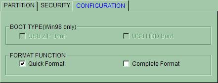 Третья закладка предназначена для выбора метода форматирования (полное или быстрое), а также позволяет сделать накопитель загрузочным, однако только при использовании Windows 9x. С учетом описанной выше универсальной утилиты, не так это и страшно и для владельцев более современных операционных систем ;)