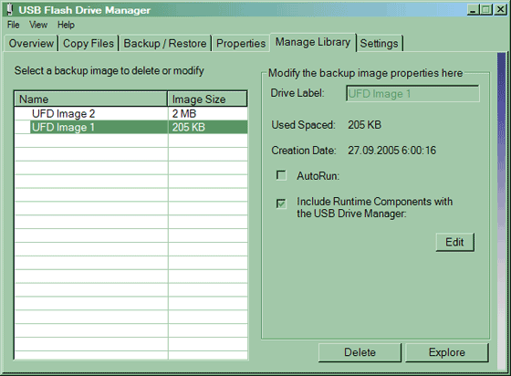 Третья закладка — то немногое, для чего программа может реально пригодиться. Несложно заметить, что с ее помощью можно легко выполнять резервное копирование и восстановление информации на флэш-накопителе. Причем резервная копия может быть не одна, а много — хоть после каждого изменения данных «снапшот» делай. С другой стороны, как-то я не замечал такого, чтобы на флэш-накопителе хранились уникальные данные: обычно они всегда есть и на других носителях, так что лишнее дублирование не нужно. Но из этого, по крайней мере, можно извлечь пользу. Но небольшую, поскольку сама операция крайне примитивна: в папке «Мои документы» создается соответствующая подпапка, куда файлы и копируются. Честно говоря, я могу эту операцию выполнять и без дополнительного софта. А если еще и каким-нибудь WinRar воспользоваться, так и результат будет лучше.