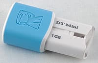 Флэшка получилась маленькой и симпатичной — всего 17,85×36×10,24 мм, независимо от того, в рабочем или походном положении: колпачков все равно нет, применена конструкция со скользящим «чехлом». По цвету последнего можно сразу и емкость устройства определить: голубой присущ моделям на 1 Гбайт, розовый — вдвое более емким. На этом все разнообразие заканчивается.