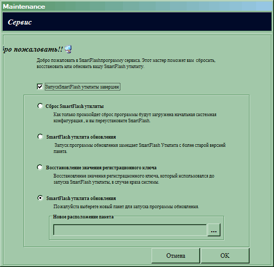 Последняя закладка предназначена для сервисных функций, типа обновления набора штатного программного обеспечения или восстановления его в исходном (послепродажном) состоянии.