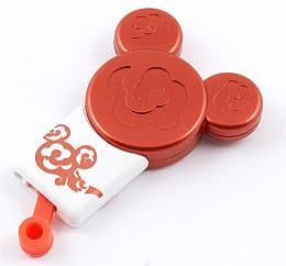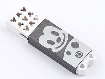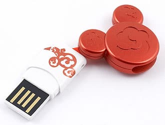И последний Микки Маус, и — последняя флэшка в сегодняшней части обзора. За основу был взят все тот же компактный тонкий накопитель, что и в ряде других моделей компании, только на него надели большой колпачок в форме мышиной головы (красного или золотого цвета), а к задней части прикрепили резиновый хвостик. Не простой, а способный заодно поработать и держателем снятого колпачка.