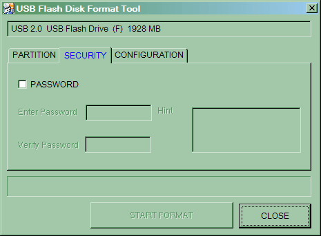 Эту программу мы подробно описывали еще осенью 2005 года, и с тех пор ничего существенно не менялось. Все, что она умеет, так это разбивать устройство на открытую и защищенную паролем части (доступ к ним переключающийся, то есть после до ввода пароля видим первую, а после под тем именем — вторую), менять размеры разделов и пароль, а также форматировать весь накопитель или один из разделов. Кроме того, накопитель можно сделать загрузочным, но… только под Windows 9x, что в 2008 году даже и не смешно. Так что лучше воспользоваться каким-нибудь альтернативным форматером, который то же сделает и на компьютере под управлением куда более распространенных Windows XP или Vista. Да и информацию надежнее можно защитить не при помощи пароля на раздел, а воспользовавшись какой-нибудь из утилит для шифрования файлов, благо их много и даже бесплатных.