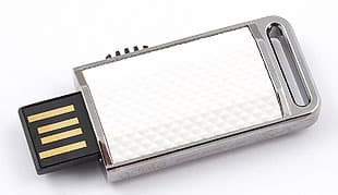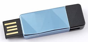 Оригинальна и конструкция флэшдрайва — здесь нет колпачков и тому подобного, что может быть легко утеряно. Поворачиваем нижнюю часть устройства (простая черная пластмасса) на 180 градусов — из противоположного торца выдвигается USB-вилка, идентичная таковой у наиболее тонких «стиков». Поворачиваем в обратном направлении — задвигается. Оригинально и достаточно удобно.