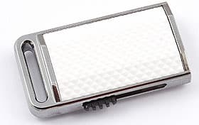 Данная модель относится к серии Nobility, что на русский язык наиболее точно переводится как «благородство» или нечто в этом роде. Внешний вид всех представителей серии подобному определению отвечает, а в случае N702 — вдвойне отвечает. Маленькая флэшка, размерами 41,85×16,2×8,15 мм и массой 6 грамм, благодаря оригинальному геометрическому узору основной части (доступны три варианта расцветки — серебристый, синий и красный) выглядит подобно ювелирному украшению. В принципе, в роли бижутерии ее вполне можно использовать — в комплект входит не привычный тканевый шнурок для ношения устройства на шее, а тоненький кожаный ремешок. Придерживающиеся более делового стиля могут носить устройство вместе с ключами — соответствующий аксессуар в коробочке тоже присутствует.