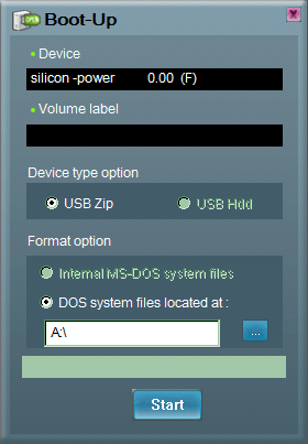 В остальном все тоже набило оскомину: можем выбрать метку тома, и указываем, где у нас лежат системные файлы (их нужно взять с заранее приготовленной дискеты или ее образа — вариант использования встроенных файлов только для Win 9x). Все — открытый раздел форматируется как системный.