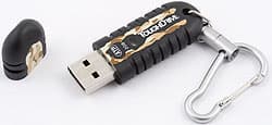 В ассортименте компании есть и более традиционные накопители — ToughDrive и ToughDrive Camo. Это модели с колпачком, размерами 75×21×11 мм. Корпус кажется резиновым, однако это особый синтетический полимер высокой прочности, а различие между данными моделями лишь в его раскраске — ToughDrive однотонный, а ToughDrive Camo, как это и следует из названия, имеет камуфляжную расцветку. Заявлено, что вода ему не грозит, благодаря все той же высокой интеграции электронной «начинки», да и емкость такая же, как у предыдущей линейки, — от 1 до 8 ГБ (мы и в этот раз тестировали накопитель самой ходовой емкости — на 2 ГБ). Зато появились упоминания о скорости работы: во-первых, поддержка Windows ReadyBoost, во-вторых, фраза о том, что скорость передачи данных может достигать 30 МБ/с. Впрочем, мы давно знаем, что скрывается под словами «может достигать» — может и не достигать. Большую пользу привело бы указание минимальной гарантированной скорости, а не максимальной, но на нет и суда нет.