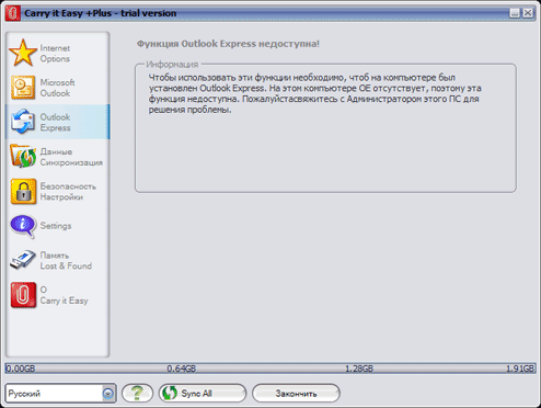 Аналогичные возможности предлагаются и для Outlook Express, которого не нашлось на нашем компьютере. Однако пользователей данной программы очень много, специальных portable-версий для установки на флэшку у нее (в отличие от многих конкурентов) нет, так что синхронизация почтовой базы с флэш-накопителем наверняка будет востребованной.