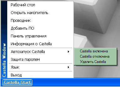При подключении накопителя с Castella к компьютеру, последняя запускается автоматически и видим мы… еще один рабочий стол — такой же, как после установки Windows XP.