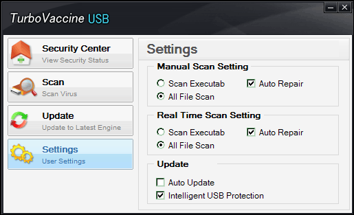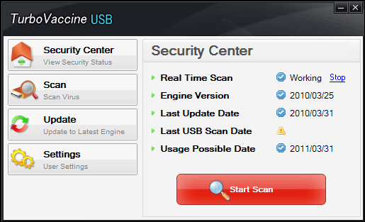 Что касается Turbo Vaccine, то основное отличие этой модификации от базовой — наличие дополнительного раздела, сконфигурированного как CD-ROM, где живет автоматически стартуемая запускалка антивируса. Сам он хранится на основной части и уменьшает ее емкость примерно на 15,5 МБ, что немного — если учесть, что мы тестировали накопитель емкостью 16 ГБ, это всего 0,1%. После запуска антивирусная программа спокойно висит в системной области панели задач, работая в «тихом режиме» (все, что можно заметить — некоторое замедление запуска приложений). Впрочем, оттуда ее можно «вытащить».