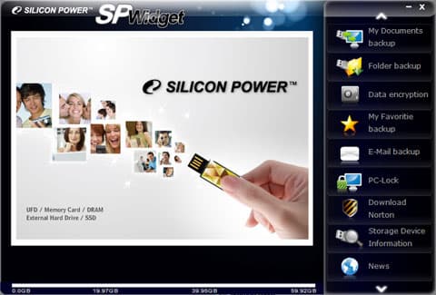 Ранее компания Silicon Power поставляла подавляющее большинство накопителей исключительно «голыми», т. е. без какого-либо дополнительного ПО. Теперь же эта «несправедливость» исправлена — владелец любого флэшдрайва или ВЖД с этой маркой может скачать с сайта утилиту SP Widget, по функциональности сильно напоминающую CoSoSys CarryItEasy+, также предлагаемую многими производителями флэшек по лицензии (например, специальная версия для Transcend носит название JetFlash Elite). Однако, несмотря на это сходство, утилита производит впечатление оригинального продукта, да и выглядит совсем по-другому.