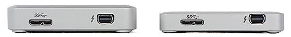 Если есть внешние винчестеры с интерфейсами USB 3.0 и Thunderbolt, а также внешние SSD с интерфейсом USB 3.0, почему не может быть SSD с обоими? Может, разумеется. И таков наш очередной герой. По сути, это более компактный (121,2×75,2×13,5 мм) и легкий (136 граммов) «родной брат» вышеприведенного устройства, только внутри уже не винчестер, а 256, 512 или 1024 ГБ флэш-памяти. Практически аналогично JetDrive 500, но обратите внимание на разницу в размерах корпусов — поддержка двух интерфейсов бесплатно не дается. Нужна ли она на практике — мы проверим.