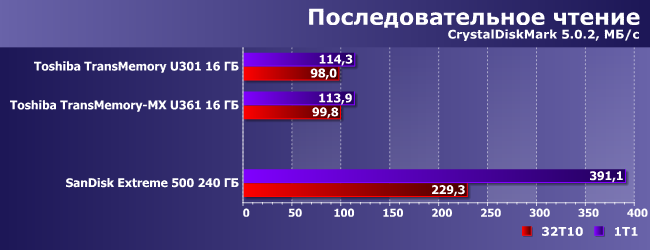 Методика подробно описана в отдельной статье. Там можно познакомиться с используемым аппаратным и программным обеспечением. Некоторые результаты для наглядности мы будем сравнивать с показателями недавно протестированного по той же методике внешнего SSD SanDisk Extreme 500 — устройства более высокого класса, но многим как раз и интересно: стоит ли за это доплачивать или накопитель массовых серий подойдет.