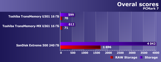 Бюджетные флэш-драйвы чаще всего приобретаются для простого хранения и переноса информации, хотя никто не мешает использовать их и для «более серьезных» сценариев: в частности, для portable-версий ПО и т. п. Лучше, впрочем, этого не делать, что хорошо показывает PCMark 7.