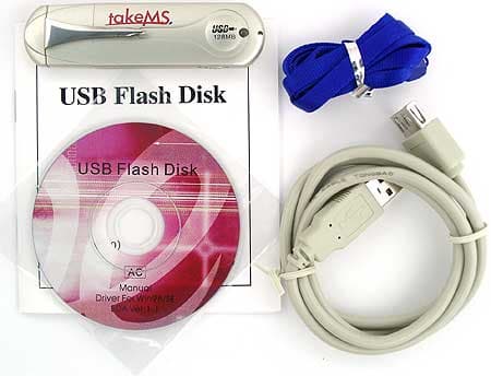 Комплект поставки аналогичен EasyDisk: шнурок для ношения накопителя на шее (такой же, как и раньше), USB-удлинитель, инструкция, гарантийка и CD с драйверами и ПО. Разве что CD сейчас 80 мм, а не стандартный, да и инструкция стала чуть меньше. Скорее всего, оба изменения связаны с разной упаковкой EasyDisk и TakeMS. Во всяком случае, спецификации TakeMS по инструкции точно совпадают с приведенными для EasyDisk на SSS.