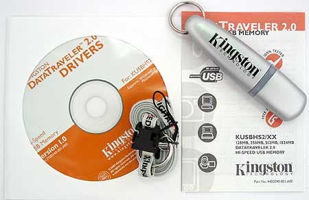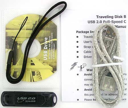 Комплект поставки прост, но достаточен для большинства применений. Сам накопитель, шнурок для его ношения на запястье, USB-удлинитель, краткая бумажная инструкция и CD-визитка с драйверами для Windows 98 и утилитами. Ничего лишнего, но все необходимое есть.