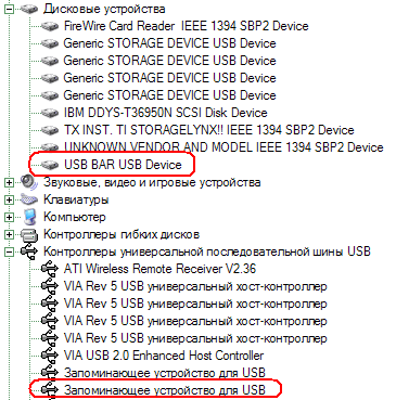 В списке устройств мы видим просто «USB BAR Device» без какого-либо упоминания о производителе.