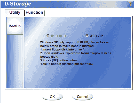 Закладка Utility нужна только для одного — сделать накопитель загрузочным. В версии 2.1 почему-то никакого хелпа нет, несмотря на то, что «в лоб» задача решается только под управлением Windows 9x.
