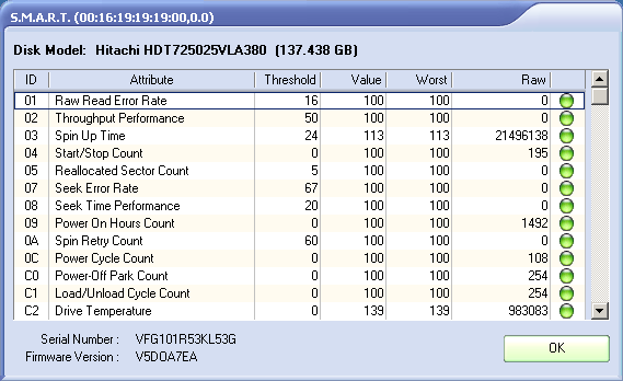 Отображение параметров SMART
